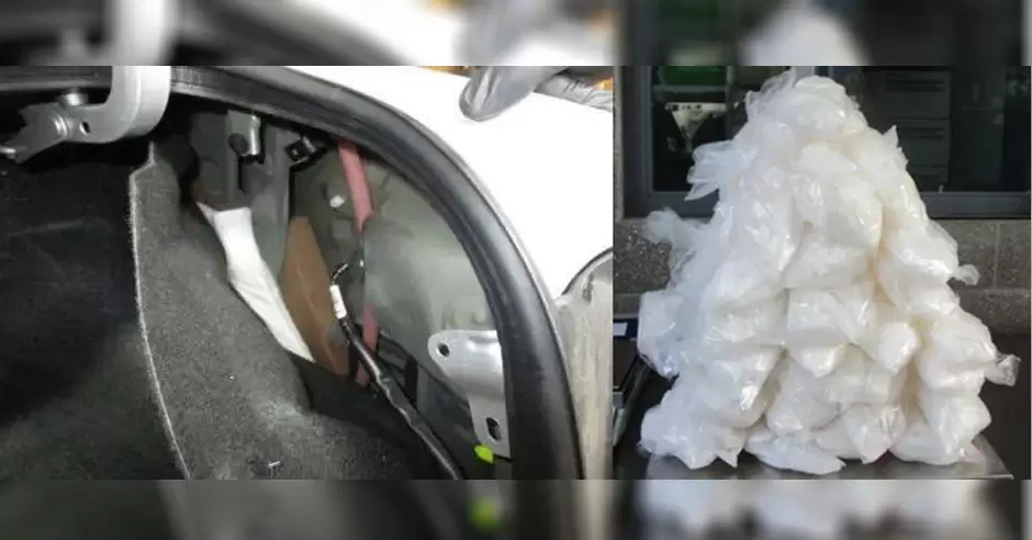 Una inspección física reveló 94 paquetes ocultos en el techo. Los paquetes contenían aproximadamente 35 libras de fentanilo en polvo, con un valor estimado en la calle de casi 1.95 millones de dólares, y más de 80 libras de metanfetamina, con un valor estimado de $80,550.