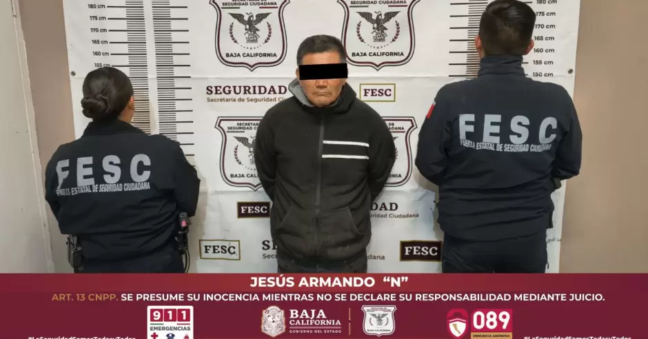 Derivado de lo anterior, se procedió de inmediato a la detención de quien se identificó como Jesús Armando "N", de 55 años y originario de Ensenada. El individuo fue turnado a la Fiscalía General del Estado (FGE), autoridad encargada de determinar su situación legal.