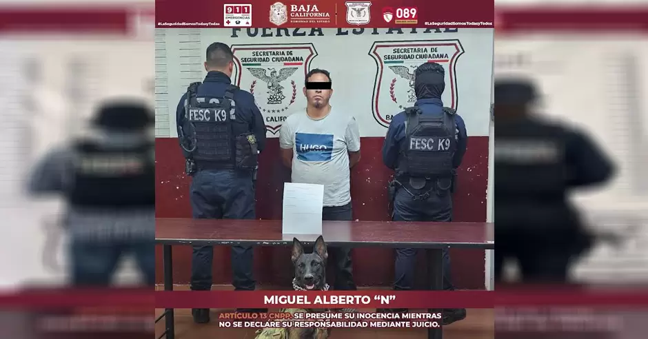 MEXICALI.- Un presunto homicida, quien era buscado por la justicia de Baja California desde el mes de agosto de 2024, fue capturado en la capital del Estado por agentes del Grupo de Operaciones Caninas (K-9) de la Fuerza Estatal de Seguridad Ciudadana (FESC); con este resultado se envía un mensaje firme de que la impunidad no será tolerada, y se reafirma el compromiso institucional de garantizar que quienes infringen la ley enfrenten las consecuencias.