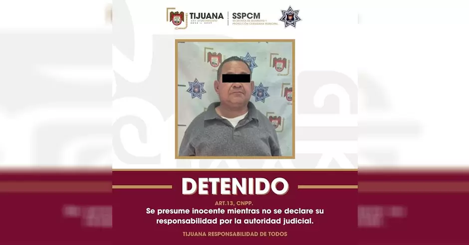 TIJUANA.- La Secretaría de Seguridad y Protección Ciudadana Municipal (SSPCM) detuvo a un hombre señalado por agresión sexual en agravio de una joven de 14 años, hechos ocurridos en las inmediaciones de la Unidad Deportiva de la colonia Nueva Tijuana.