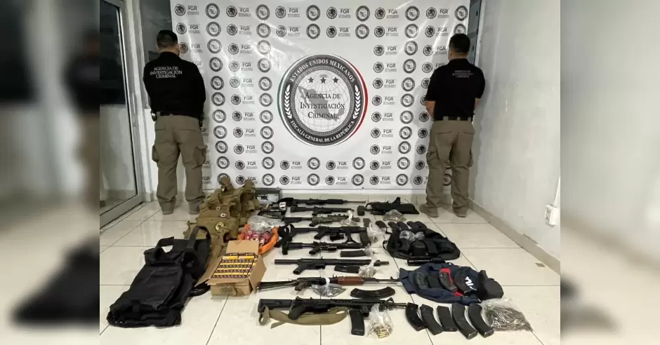 Por tal motivo el MPF, solicito una técnica de investigación ante el Juez y al desahogar la diligencia, los elementos de la Agencia de Investigacion Criminal (AIC), en coordinación con elementos de la SEDENA, encontraron: ocho armas largas, un aditamento lanza granadas, dos mil 706 cartuchos de diferentes calibres, 25 cargadores para arma de fuego, seis chalecos balísticos, un chaleco táctico y un vehículo.