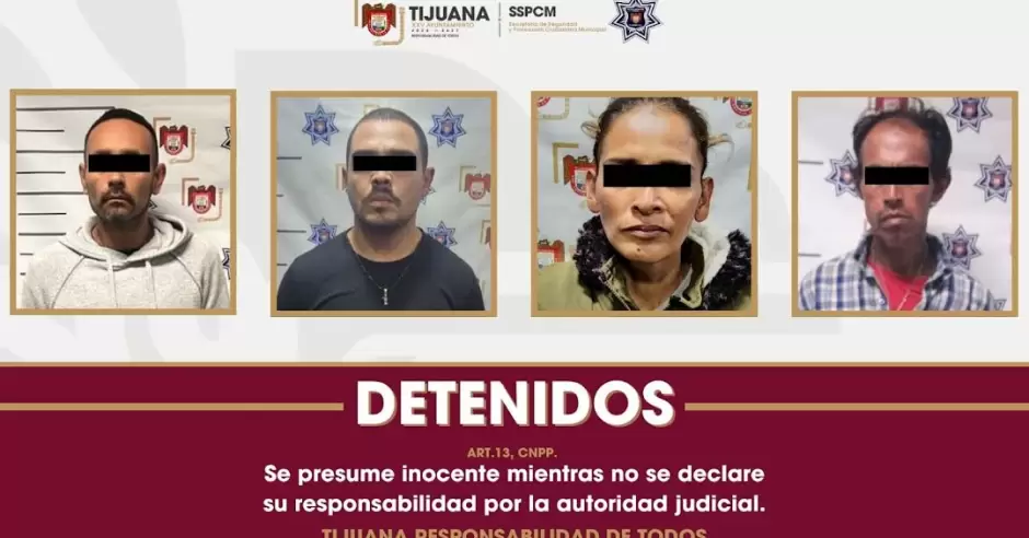 TIJUANA.- Elementos de la Secretaría de Seguridad y Protección Ciudadana Municipal (SSPCM) detuvieron a cuatro personas por presuntos delitos contra la salud, resultado del reforzamiento de los patrullajes preventivos y operativos estratégicos implementados en distintos puntos de la ciudad.