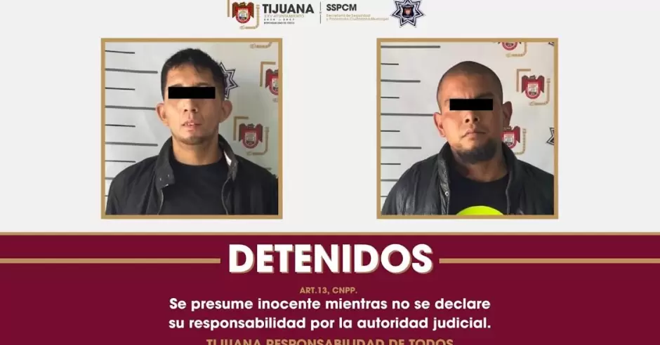 En ese momento, un oficial adscrito a la Dirección de Protección Comercial y Vigilancia Auxiliar, comisionado en la zona, entregó a los presuntos responsables, identificados como José Alejandro "N", de 23 años, originario de Araujo, EUA, y Germán Ernesto "N", de 30 años, originario de Tijuana.