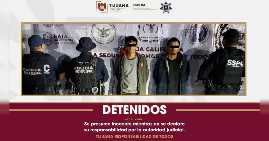 TIJUANA.- Tras el despliegue operativo de la Policía Municipal, en coordinación con la Secretaría de Seguridad y Protección Ciudadana, así como con la Fuerza Estatal de Seguridad Ciudadana, se logró el aseguramiento de dos personas en posesión de armas de fuego y delitos contra la salud.