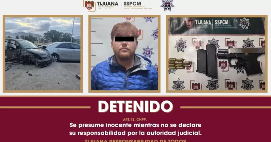 TIJUANA.- En atención a un reporte oportuno emitido por la Central de Radio sobre daños en propiedad ajena derivados de un hecho de tránsito en la colonia El Pípila, elementos de la Policía Municipal adscritos al Distrito La Presa, detuvieron a un hombre que además portaba un arma de fuego.