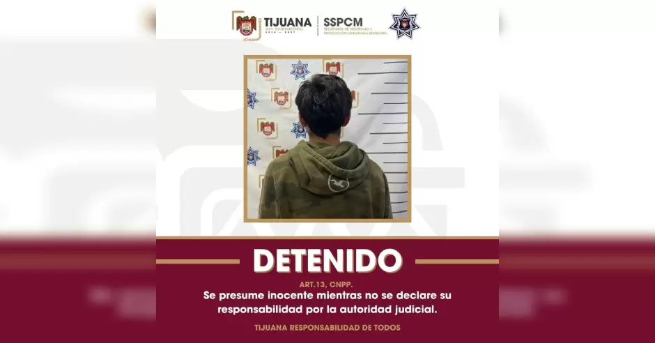 TIJUANA.- La pronta respuesta de la Policía Municipal de Tijuana permitió el aseguramiento de un joven de 17 años, señalado como responsable de un robo con violencia a una mujer en la colonia Camino Verde.