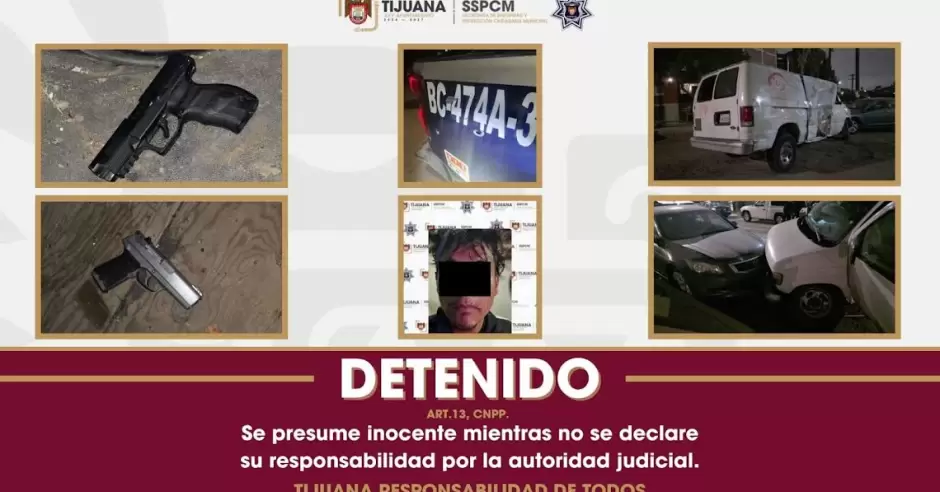 TIJUANA.- La Secretaría de Seguridad y Protección Ciudadana Municipal (SSPCM), detuvo a una persona como presunta responsable de portación ilegal de arma de fuego y agresión en contra de oficiales de la Policía Municipal en la colonia Los Potros.