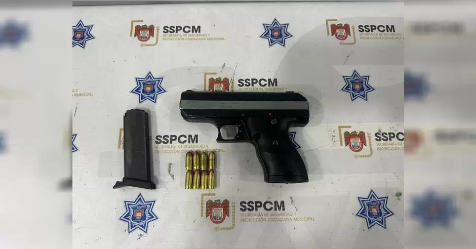 Los agentes les dieron seguimiento, logrando la detención de uno de los individuos, el cual se identificó como Kevin "N" de 16 años, mientras que al efectuar una revisión precautoria en el interior del vehículo fue localizada un arma tipo pistola abastecida con ocho cartuchos útiles.