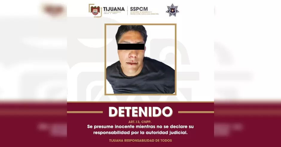 TIJUANA.- La Secretaría de Seguridad y Protección Ciudadana Municipal (SSPCM), en coordinación con la Fuerza Estatal de Seguridad Ciudadana (FESC), aseguró al presunto responsable causante de una persecución por diversas avenidas de la Zona Río; detenido por el delito de portación de arma de fuego.