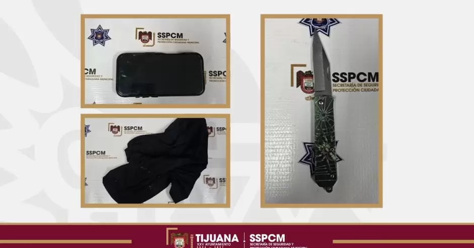 Tras realizar una inspección preventiva, conforme a los protocolos establecidos, a los menores se les localizó una navaja metálica de color plateado con la imagen de una araña, así como un teléfono celular, presuntamente propiedad de la víctima y un capuchon de tela color negro.