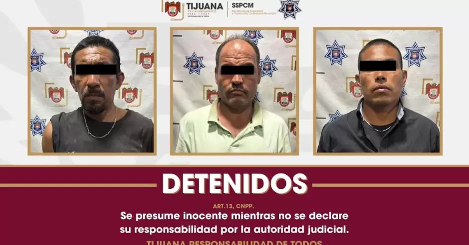 TIJUANA.- El XXV Ayuntamiento de Tijuana, a través de la Secretaría de Seguridad y Protección Ciudadana Municipal (SSPCM) informa que fueron detenidas tres personas por el delito de posesión de sustancias prohibidas y de quienes se presume están vinculadas con el abandono de un cuerpo sin vida en la Delegación Centenario, ocurrido la noche del 15 de abril.