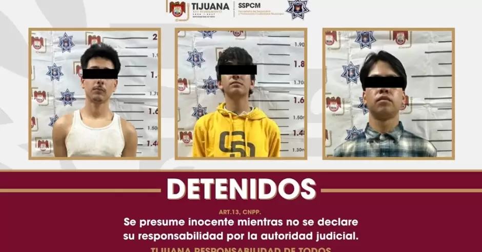 TIJUANA.- La Secretaría de Seguridad y Protección Ciudadana Municipal (SSPCM) llevó a cabo la detención de tres individuos identificados como presuntos responsables del homicidio de una persona ocurrido en la colonia Santa Fe el pasado domingo 8 de marzo.