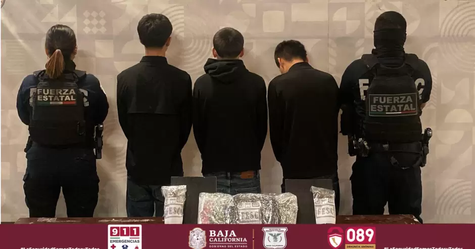 TIJUANA.- Como resultado de operativos preventivos en el municipio, agentes de la Fuerza Estatal de Seguridad Ciudadana (FESC) detuvieron a tres jóvenes y aseguraron diversas dosis de droga en la Zona Centro de Tijuana la noche del pasado jueves 19 de marzo.