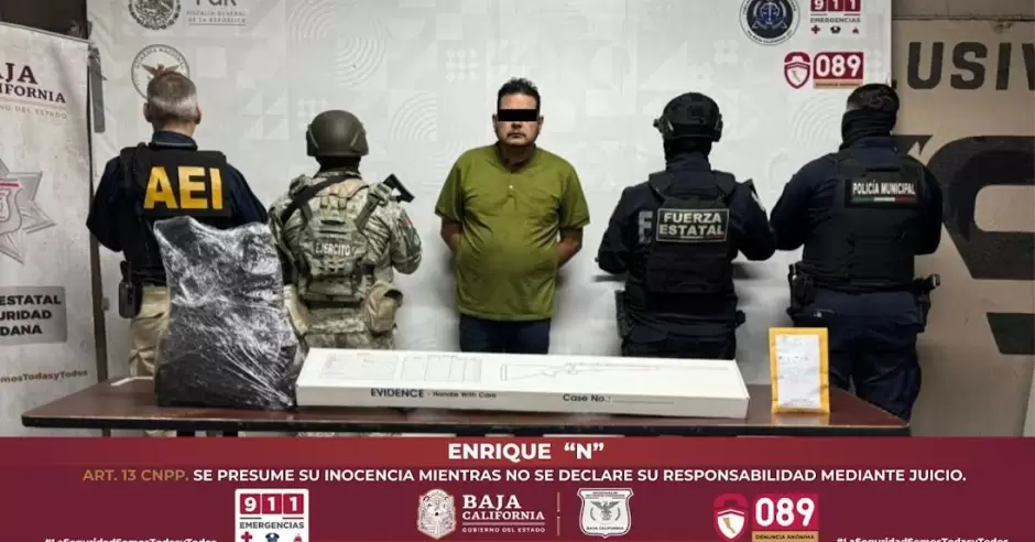 El detenido fue identificado como Enrique "N", de 53 años, originario de Mexicali. Al verificar sus datos, se confirmó que actualmente no pertenece a ninguna corporación de seguridad. Conforme a los protocolos establecidos, se le informó el motivo de su detención y se le colocaron los aros de seguridad.