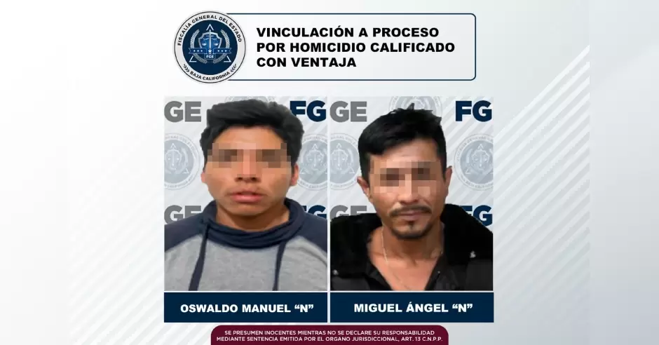 TIJUANA.- Con el objetivo de que ningún crimen quede impune, la Fiscalía General del Estado, con base en evidencia y datos de prueba sólidos, obtuvo la vinculación a proceso de dos sujetos señalados del delito de homicidio calificado con ventaja, en agravio de un hombre.