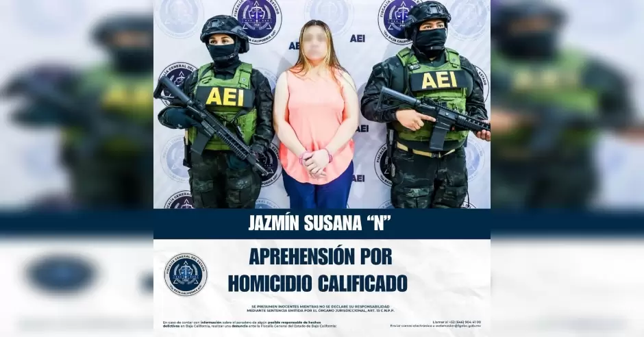 TIJUANA.- La Fiscalía General del Estado a través de su titular, Dra. Ma. Elena Andrade Ramírez, informa que, derivado de los trabajos de investigación realizados por la institución, se logró obtener y cumplimentar una orden de aprehensión en contra de Jazmín Susana "N", probable responsable del delito de homicidio calificado cometido en perjuicio de su madre, María Esther, de 69 años de edad.