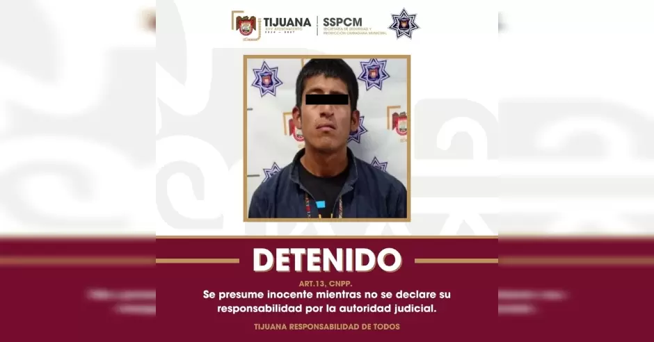 TIJUANA.- La Secretaría de Seguridad y Protección Ciudadana Municipal (SSPCM) informa que, durante un recorrido de vigilancia en la colonia Lomas Verdes, agentes de la Policía Municipal detuvieron a un hombre señalado por presuntamente realizar actos de exhibicionismo y tocamientos en contra de una mujer.