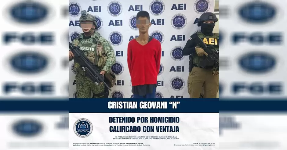 Derivado de labores de investigación de gabinete y campo, el Juez de Control Penal del Poder Judicial del Estado de Baja California emitió una orden de aprehensión en contra de Cristian Geovani "N", alias "El Catracho". Gracias al trabajo conjunto de las autoridades de Baja California y Nuevo León, esta orden fue cumplimentada y el imputado puesto a disposición de la autoridad judicial correspondiente para que responda por los hechos que se le imputan. La Fiscalía General del Estado reitera su compromiso con la coordinación institucional y la procuración de justicia en favor de las y los bajacalifornianos.
