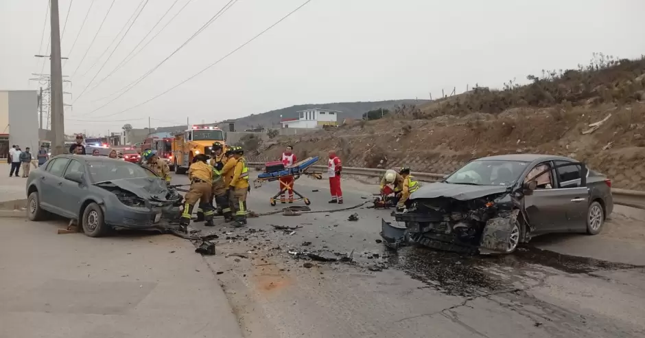 Tijuana.- Un choque frontal entre dos vehículos particulares en el Boulevard García, en la Sección Bosques del fraccionamiento de la zona Este, dejó a cuatro personas lesionadas, entre ellas una mujer que quedó atrapada entre los fierros.