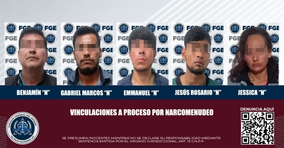 TIJUANA.- La Fiscalía General del Estado informa que cinco imputados por delitos contra la salud en la modalidad de narcomenudeo fueron vinculados a proceso penal, luego de que el Ministerio Público presentara los elementos de prueba suficientes para que los jueces de control determinaran iniciar los procedimientos correspondientes.