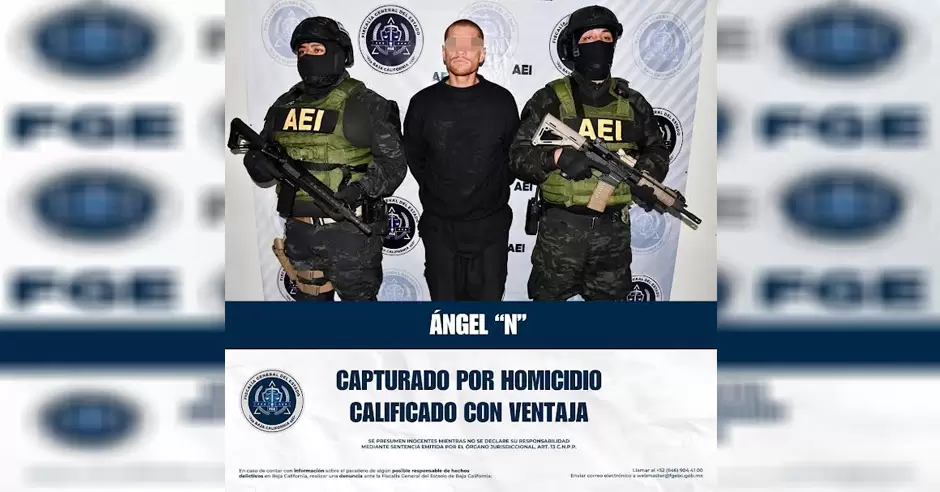 TIJUANA.- La Fiscalía General del Estado informa que, a través de la Agencia Estatal de Investigación, Zona Tijuana, adscrita a la Unidad Especializada en Delitos contra la Vida, el día 07 de enero de 2026, a las 23:55 horas, se llevó a cabo la cumplimentación de una orden de aprehensión en la colonia José Sandoval, en la ciudad de Tijuana, Baja California. Dicha acción fue realizada en contra de Ángel "N", alias "El Waco", por su probable responsabilidad en hechos constitutivos de delito en agravio de una persona.