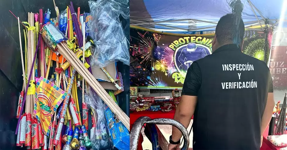 El decomiso, efectuado por personal de la Dirección de Inspección y Verificación, ocurrió durante un recorrido en la colonia Cañadas del Florido, donde se detectó un puesto en un mercado sobre ruedas que ofrecía pirotecnia de manera ilegal.