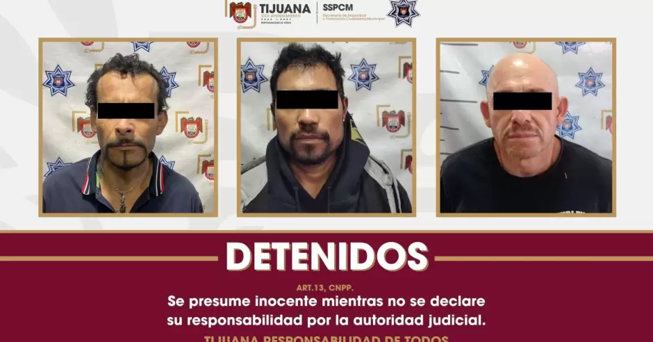 TIJUANA.- Como resultado de los recorridos de vigilancia preventiva y la atención oportuna, elementos de la Policía Municipal, pertenecientes a la Secretaría de Seguridad y Protección Ciudadana Municipal (SSPCM), en distintas acciones realizadas en puntos de la ciudad, lograron la detención de tres personas que contaban con órdenes de aprehensión vigentes por diversos delitos.