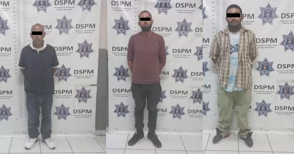MEXICALI.- La Dirección de Seguridad Pública Municipal de Mexicali (DSPM), detuvo a José Guadalupe "N" de 25 años de edad, Juan Salvador "N" de 38 años y Rodrigo Ernesto "N" de 50 años, señalados como presuntos responsables de robo con violencia a persona en grado de tentativa.