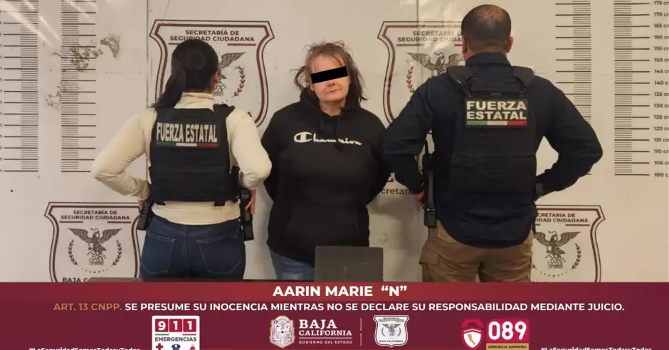 TIJUANA.- El intercambio de información entre ambos lados de la frontera fue determinante para que agentes de la Fuerza Estatal de Seguridad Ciudadana (FESC) lograran capturar a Aarin Marie "N", una fugitiva que se internó en territorio mexicano para evadir a la justicia de Estados Unidos, luego de que presuntamente cometiera un homicidio en el año 2022 en California.