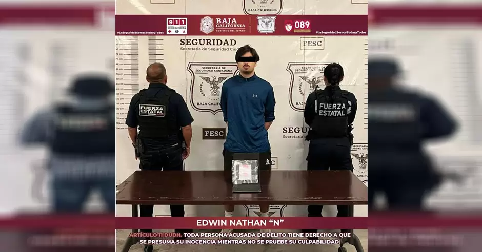 Una vez detenido, la Coordinación de Enlace Interinstitucional y de Relaciones Internacionales de la FESC, fue informada que Edwin Nathan "N", es un fugitivo considerado de alta peligrosidad, que huyó hacia México, tras haber cometido dos asesinatos el 7 de noviembre de 2024.