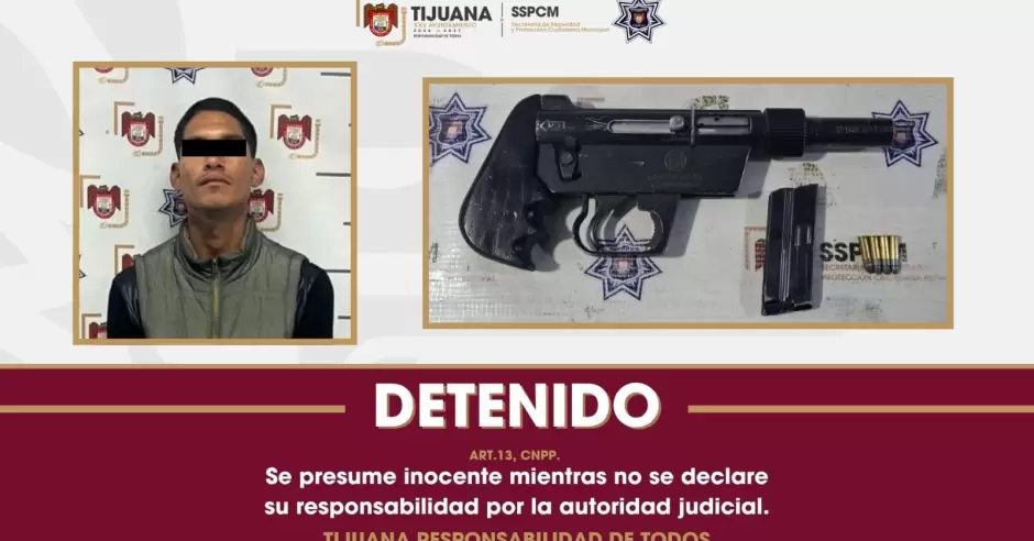 TIJUANA.- Como resultado de los recorridos preventivos de vigilancia en zonas prioritarias, elementos de la Policía Municipal lograron la detención de un hombre por portación de arma de fuego en la colonia Buenos Aires Norte.