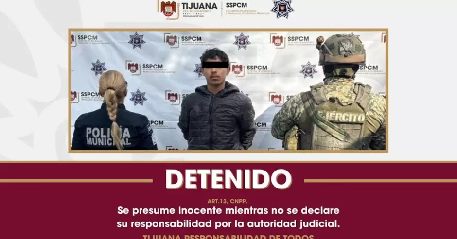 TIJUANA.- La Secretaría de Seguridad y Protección Ciudadana Municipal (SSPCM), informa que, como resultado de un operativo preventivo realizado por la Policía Municipal, en coordinación con la Secretaría de la Defensa Nacional (SEDENA), se logró la detención de una persona presuntamente relacionada con diversos delitos, en la colonia Natura, sección Bosques.