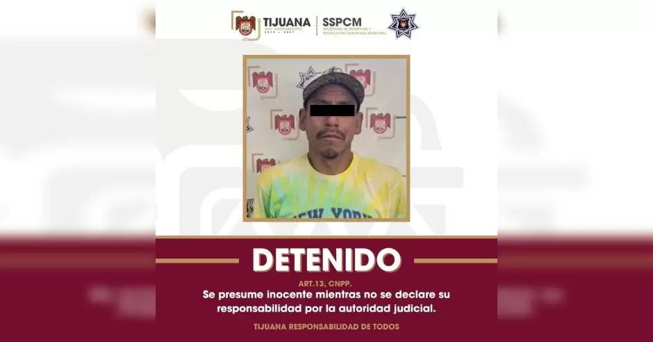 TIJUANA.- Como resultado de los patrullajes preventivos implementados por la Secretaría de Seguridad y Protección Ciudadana Municipal (SSPCM), agentes de la Policía Municipal aseguraron a un individuo identificado como objetivo prioritario del Distrito Sánchez Taboada, presuntamente relacionado con diversos robos a transeúnte y comercios en la zona.