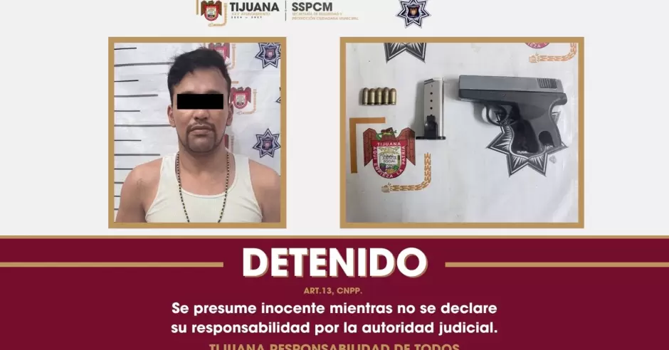 TIJUANA.- Como resultado de labores de videovigilancia y pronta coordinación operativa, fue asegurado un individuo por el delito de portación de arma de fuego, quien además contaba con una orden de aprehensión activa por narcomenudeo, en hechos registrados en la colonia Zona Norte.