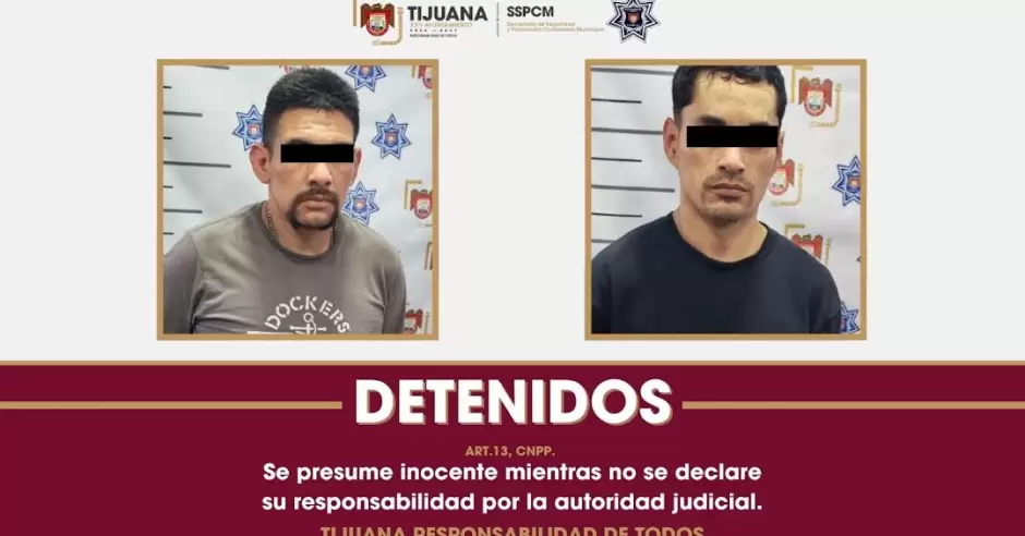 TIJUANA.- La Secretaría de Seguridad y Protección Ciudadana (SSPCM) informa que aseguró a dos individuos como presuntos responsables de un robo con violencia perpetrado en una tienda de abarrotes ubicada en la colonia Divina Providencia, utilizando un arma de utilería, la tarde del pasado miércoles 30 de julio.