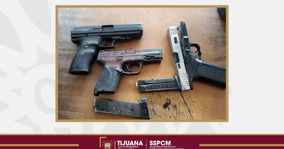 Tijuana.- Elementos de la Policía Municipal de Tijuana aseguraron la tarde de este lunes a uno de los presuntos responsables de un asalto con violencia a un comercio ubicado en la colonia Mariano Matamoros, así como el aseguramiento de cuatro armas de fuego y un vehículo con reporte de robo.