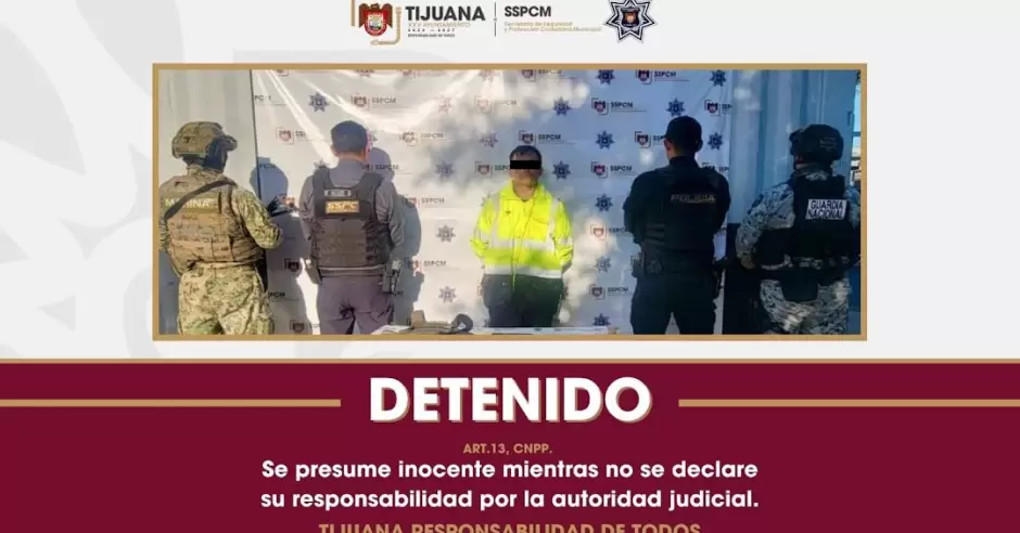 TIJUANA.- La Secretaría de Seguridad y Protección Ciudadana Municipal (SSPCM) informa que elementos de la Policía Municipal de Tijuana detuvieron a una persona presuntamente involucrada en los delitos de daños, portación de arma de fuego y en posesión de un vehículo con reporte de robo, derivado de una denuncia ciudadana atendida durante patrullajes preventivos coordinados entre la SSPCM, la Secretaría de Seguridad y Protección Ciudadana Federal (SSPCF), la Secretaría de Marina y la Guardia Nacional.