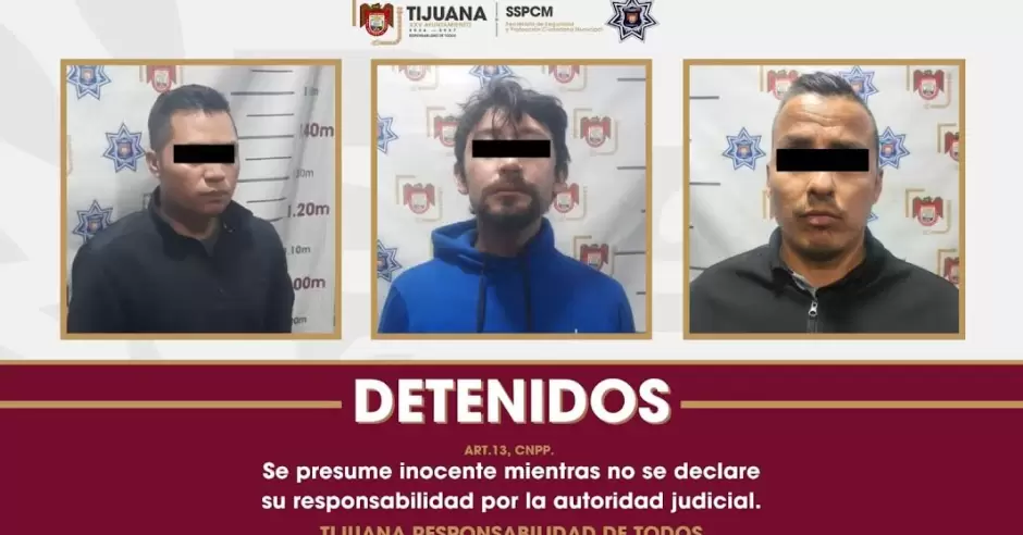 Por estos hechos, se procedió al aseguramiento de Agustín "N", de 30 años de edad; Jesús Adrián "N", de 34 años; y Francisco Javier "N", de 41 años, quienes fueron trasladados ante la autoridad competente para determinar su situación legal conforme a derecho.