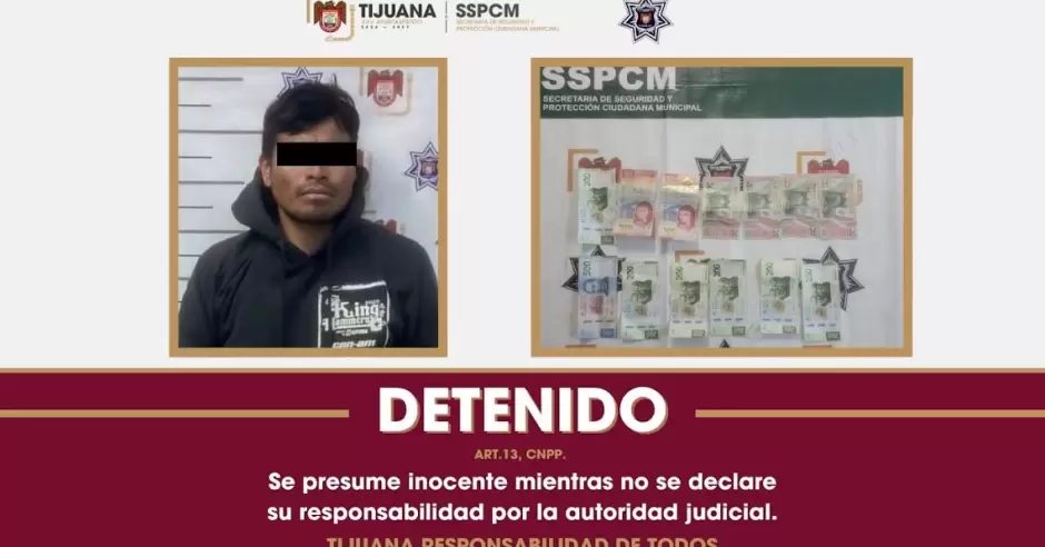 TIJUANA.- Elementos de la Policía Municipal de Tijuana detuvieron a un hombre señalado como presunto responsable de un robo con violencia a un comercio Oxxo, en la colonia Zona Centro.