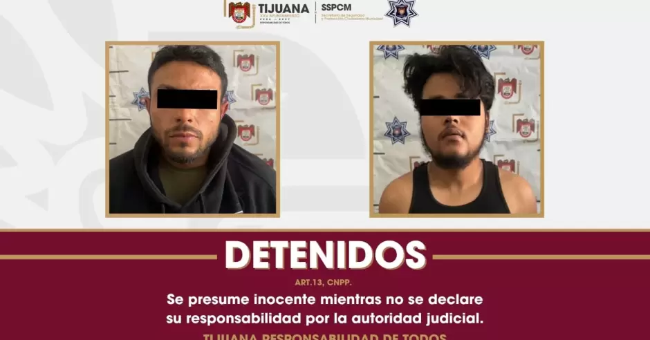 Tijuana.- Elementos de la Secretaría de Seguridad y Protección Ciudadana Municipal detuvieron a dos personas señaladas como presuntas responsables de un doble homicidio ocurrido la tarde de este miércoles 8 de abril en una frutería de la colonia Castillo.