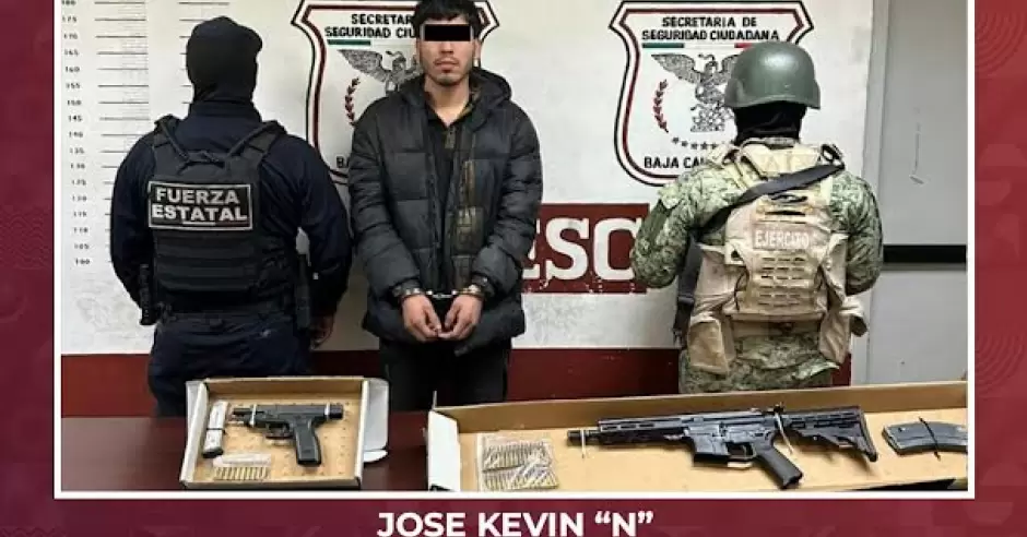 El hombre se identificó como José Kevin "N" de 23 años de edad y originario de Badiraguato, Sinaloa, a quien se le notificó que sería detenido y presentado ante la Fiscalía General de la República (FGR) por el delito de Portación de Armas de Fuego de Uso Exclusivo del Ejército.