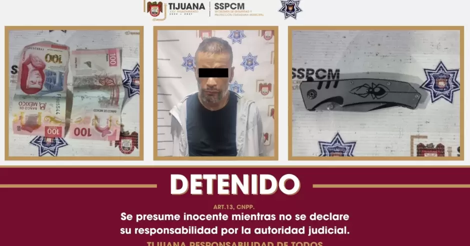 Tijuana.- Elementos de la Secretaría de Seguridad y Protección Ciudadana Municipal detuvieron a un hombre señalado como presunto responsable de un robo con violencia a un comercio en la colonia Buena Vista.