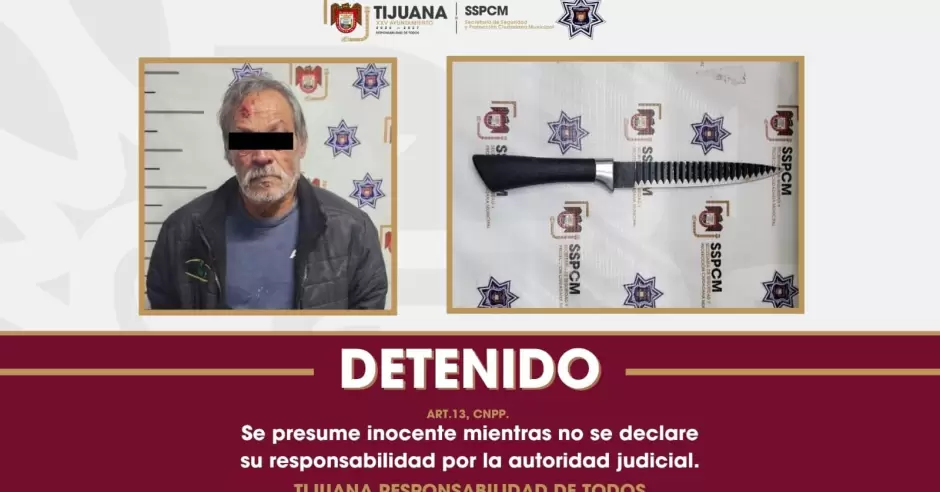 Tijuana.- En una atención oportuna a un reporte canalizado a través de la central de radio, elementos de la Policía Municipal realizaron la detención de un hombre señalado como presunto responsable del delito de amenazas con arma punzocortante, derivado de una intervención realizada en el distrito Natura.