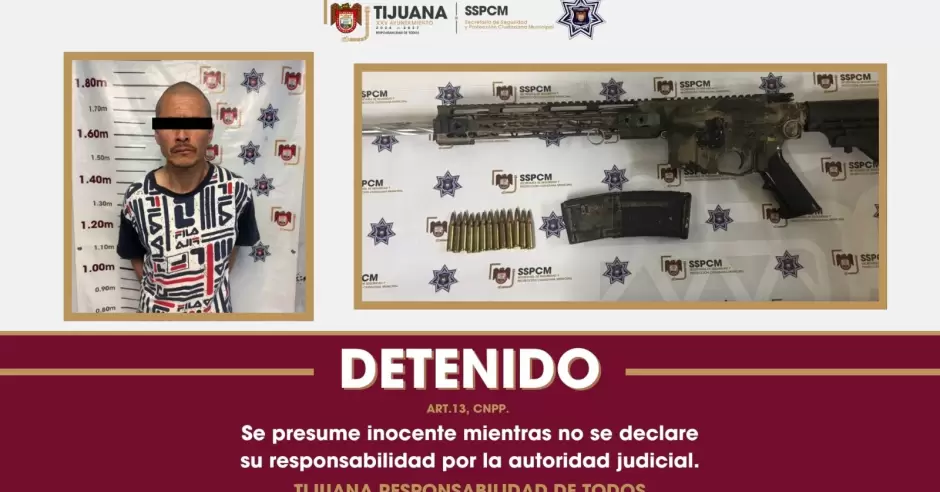 TIJUANA.- Elementos de la Secretaría de Seguridad y Protección Ciudadana Municipal (SSPCM) detuvieron a un presunto generador de violencia en posesión de un arma larga durante un operativo preventivo en la colonia Alfonso Garzón.