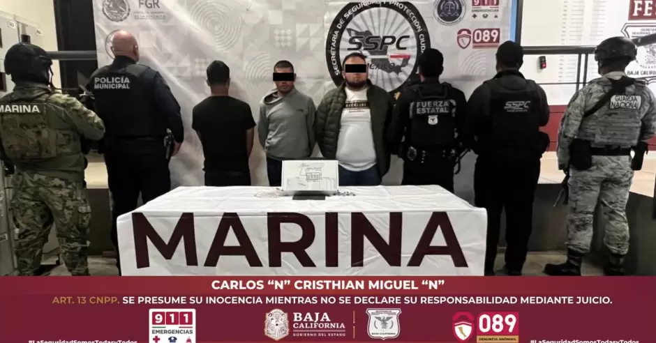 Tras la inspección, se confirmó que se trataba de un arma corta tipo revólver con cuatro cartuchos útiles, por lo que se procedió a la detención de Carlos "N", de 29 años; Cristhian Miguel "N", de 28; y un menor de 17 años, todos originarios de Tijuana.