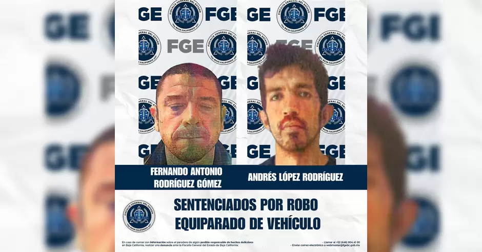 TIJUANA.- La Fiscalía General del Estado, a través de la Fiscalía Regional de Tijuana y los trabajos de investigación realizados por la Unidad Especializada en Robo de Vehículos, logró obtener dos sentencias condenatorias en casos distintos por el delito de robo equiparado de vehículo de motor, en su modalidad de poseer.
