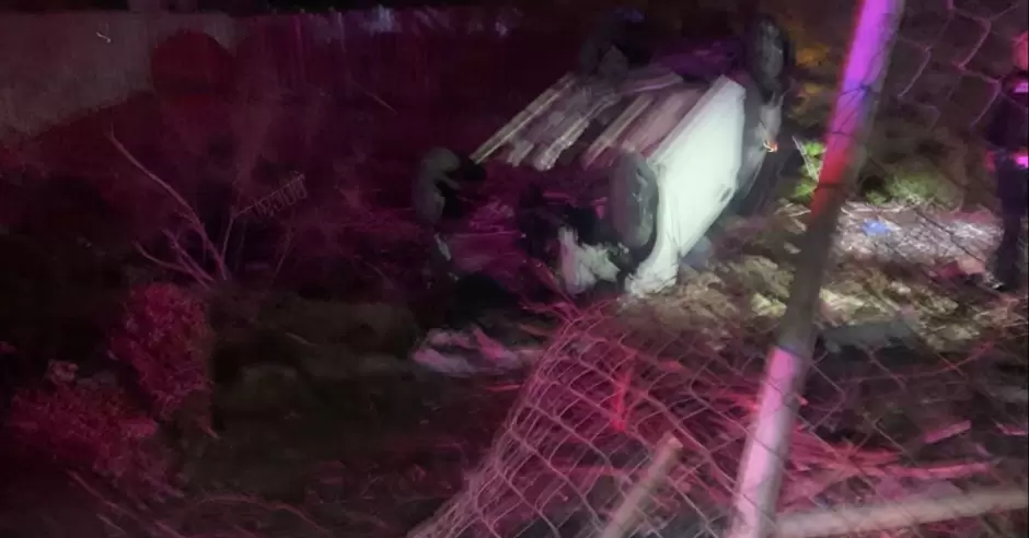 El vehículo de los aparentes responsables intentó maniobrar intempestivamente impactándose la unidad patrulla en contra del mismo, provocando perdiera el control el vehículo color blanco volcándose hacia el interior de un predio abandonado; de manera inmediata y tras el apoyo de compañeros de seguridad pública se controló la escena, brindando atención de primeros auxilios.