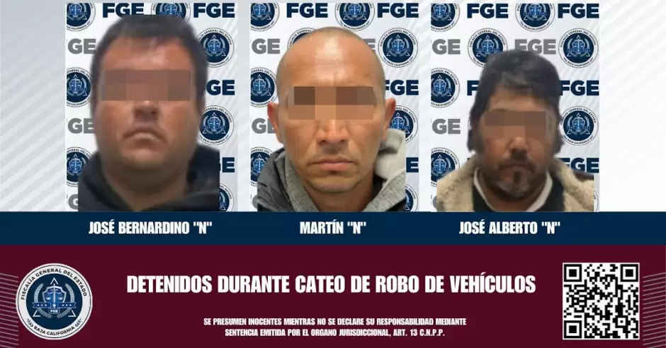 TIJUANA.- En atención a la instrucción de la Fiscal General del Estado, Dra. Ma. Elena Andrade Ramírez, de reforzar los operativos estratégicos en la región para combatir e inhibir el delito de robo de vehículos, la Fiscalía Regional de Tijuana informa que, como resultado de la ejecución de un cateo, fueron detenidos tres hombres presuntamente involucrados en este ilícito.