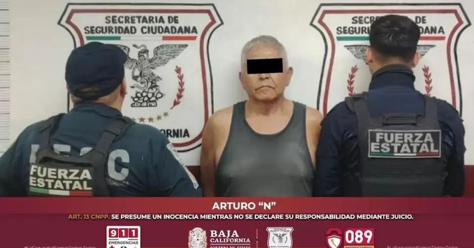 MEXICALI.- Elementos del Escuadrón Violeta, pertenecientes a la Fuerza Estatal de Seguridad Ciudadana (FESC), detuvieron a Arturo "N", de 58 años y originario de Sonora, señalado por un caso de violencia familiar en un domicilio de la colonia González Ortega, en la capital del Estado.