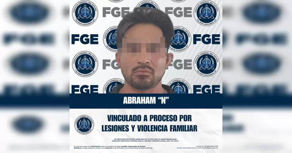 TIJUANA.- La Fiscalía Regional de Tijuana, gracias a las labores de la Unidad de Investigación con Detenidos, presentó los datos de prueba suficientes para que se dictara auto de vinculación a proceso en contra de Abraham "N", por su probable responsabilidad en los delitos de lesiones y violencia familiar, resultado del trabajo coordinado y diligente del personal ministerial y policial adscrito a esta institución.